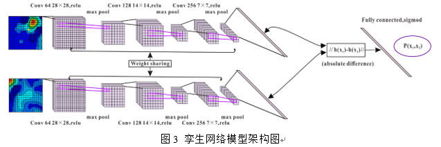 孪生网络(Siamese Network)的核心思想即通过两个权重相同、结构一致的神经网络提取在公共特征空间上两个输入样本的特征,在新的特征空间对这两个输入进行度量学习,使其得到任务需求的特征(图3)。