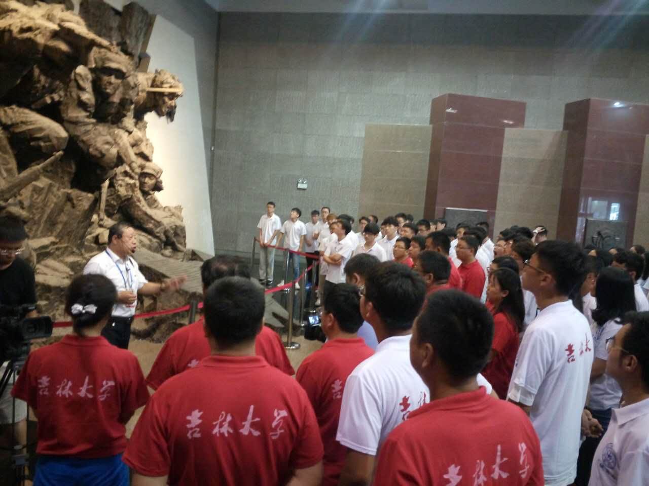 参观正式开始前,在纪念馆前的广场上,全体教工党员、学生党员面向党旗整齐列队,在郭巍教授的领誓下重温入党誓词。随后参观人员有序入场,在讲解员的引领下参观各个展厅,认真倾听介绍。看着一张张珍贵的历史照片,一件件饱经战争洗礼的文物;聆听着激烈、感人、壮烈的战争场景讲述,在场的每一位师生都被震撼着、感动着。大家深刻感受到,今天的美好生活,是无数革命先烈用鲜血和生命换来的。作为新世纪的中国青年,作为生活在和平年代的中国人,我们应该通过什么来表现自己的爱国情怀呢?做好本职工作,完成好学业,学到本领,为社会贡献力量,这就是我们的爱国情怀!