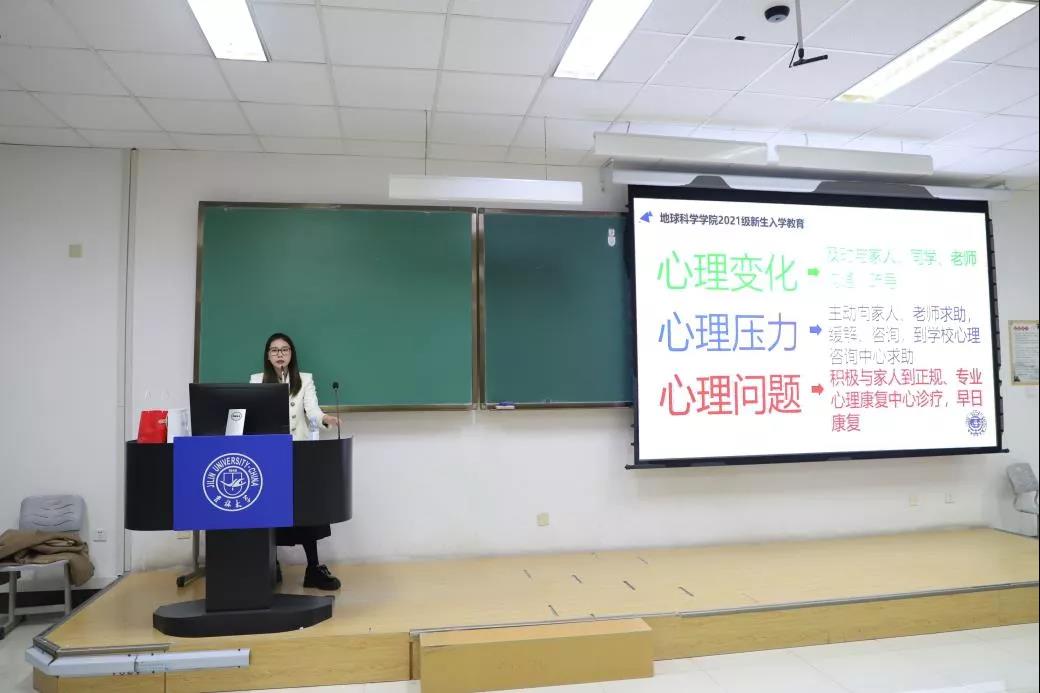 随后,韩旭老师面向全体新生同学做了关于正确的大学学习态度的介绍,强调同学们的大学生活应该以学习为重,大学生应有丰富多彩的日常生活,但不意味着弱化学习的重要性,更不意味着可以沉迷于游戏娱乐,学习始终是学生第一重要的任务。