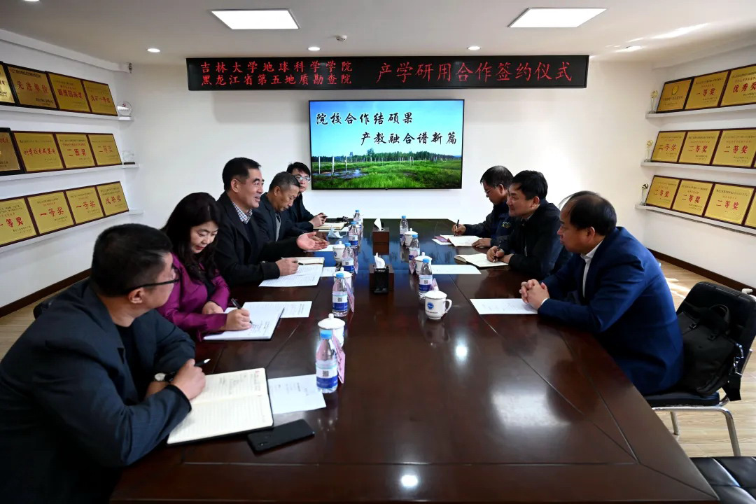 院长单玄龙、党委书记杨洲、资源工程系主任杨言辰,黑龙江省第五地质勘查院党委书记孙甲富、总工程师计向臣、副院长雷敏及相关工作人员等8人参加了签约仪式。