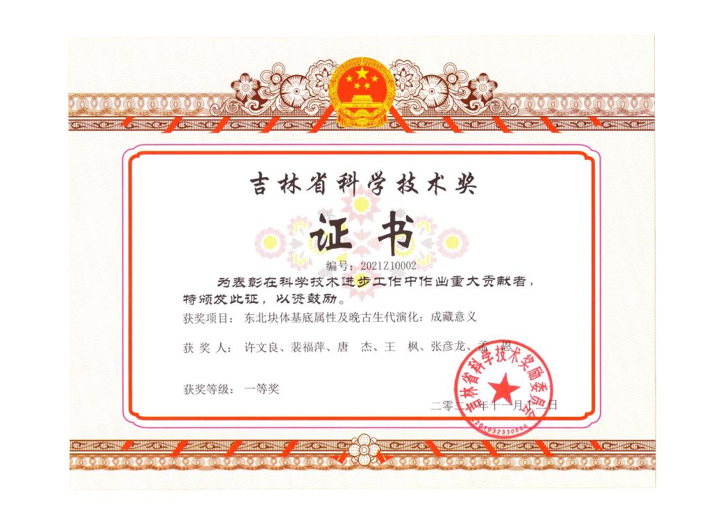 有46项成果获吉林省科学技术奖,其中,作为第一完成单位获自然科学奖一等奖4项、二等奖9项。