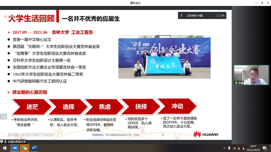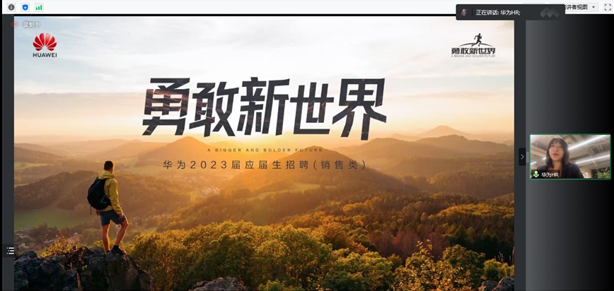 与华为技术有限公司吉林代表处在云端开展了2023届华为校招就业专场分享会。华为吉林人力资源部部长胡光,华为中国地区校招负责人段彩云,华为内蒙古代表处运营商客户经理黄钰、华为辽宁代表处政企客户经理朱磊参加了本次分享会,会议由豪神娱乐城