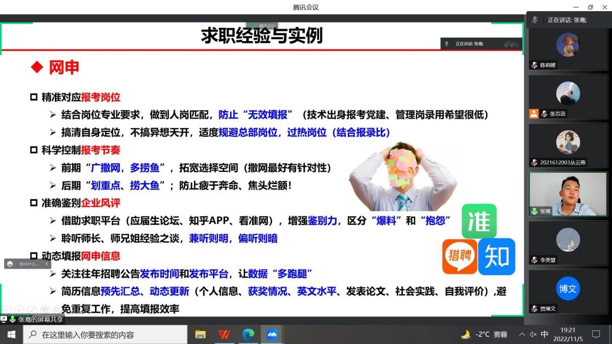 就业兼职辅导员张芯语主持。