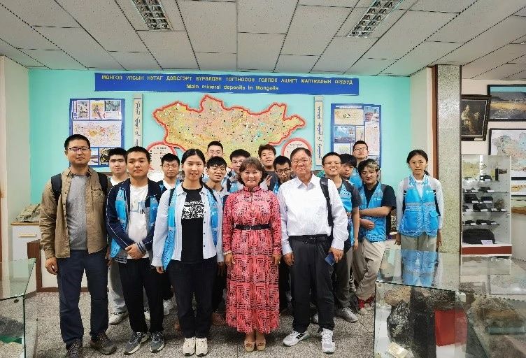 本次实习日程安排紧凑,实习内容充实。07月15日,在蒙古科技大学老师的带领下,参观了蒙古科技大学实验室和博物馆。在此过程中,与蒙古科技大学老师进行交流讨论,了解蒙古国的地质构造演化史和蒙古国各地所产出的主要矿产资源,学生为蒙古国产出有如何丰富的矿产资源而惊讶的同时,也坚定了为我国地质事业发展添砖加瓦的信心。随后在与中资企业蒙古正元公司的接触过程中,深入了解了近年来蒙古国的矿业开发情况。蒙古正元公司为本次实习的顺利开展,提供了大量的支持和帮助。