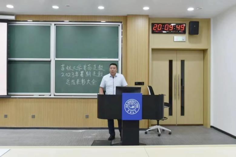 走过的数年历程,同时向支教成员们提出了三点要求:一是希望同学们成为一颗种子,努力在基层的沃土中汲取成长的力量,以激情燃烧的青春,把论文写在祖国的大地上;二是希望同学们成为一支火炬,以优秀的学识和道德品行照亮和指引支教地的孩子们,当好教书“大先生”;三是希望同学们成为一座桥梁,连接起吉大和支教所在地,为高校人才培养和思政教育,也为支教所在地教育发展作出应有贡献。