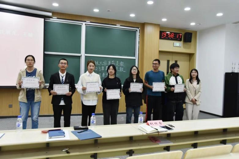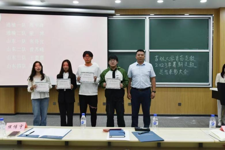 团委办公室主任侯博宇老师,育苗支教指导教师纪核鑫老师对支教过程中的优秀支教队队长、优秀支教班主任、优秀调研报告人员、优秀宣传员、优秀支教队队员进行了表彰。这些同学为了支教的顺利开展与完成,在支教过程中付出了极大的努力,杰出的表现受到了当地学生、老师和家长们的一致认可与好评。在面对困难时,他们主动出谋划策、挺身而出,与其他支教队员团结合作、解决难题;他们充分发挥自身的聪明才干,让整支支教队伍得以充满生机与活力,也让此次支教活动得以高效推进。正是因为他们的努力和付出,育苗支教2023年暑期支教才得以画上一个完美的句号。