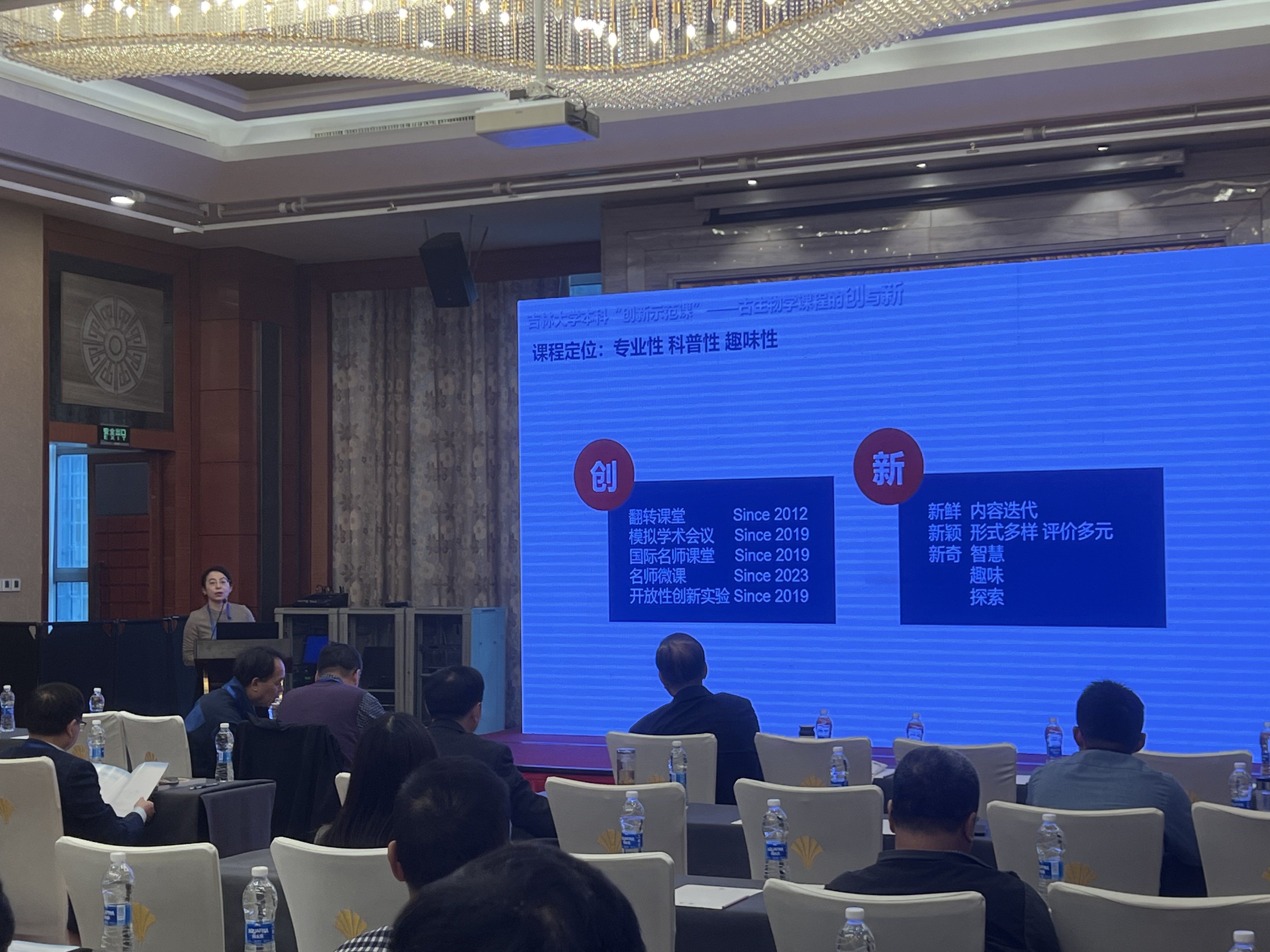 ‘创新示范课’—古生物学的‘创’与‘新’为题目做了会议报告。报告以古生物学课程为载体,通过将翻转课堂、模拟学术会议、国际名师课堂、名师微课、开放性创新实验等创新形式融入到课堂中,使古生物学这门课程充满智慧、趣味与探索。在学生学习专业课程的同时,激发了学生对专业的兴趣和极强的求知欲,完美的将思政内容融入到了课程之中。