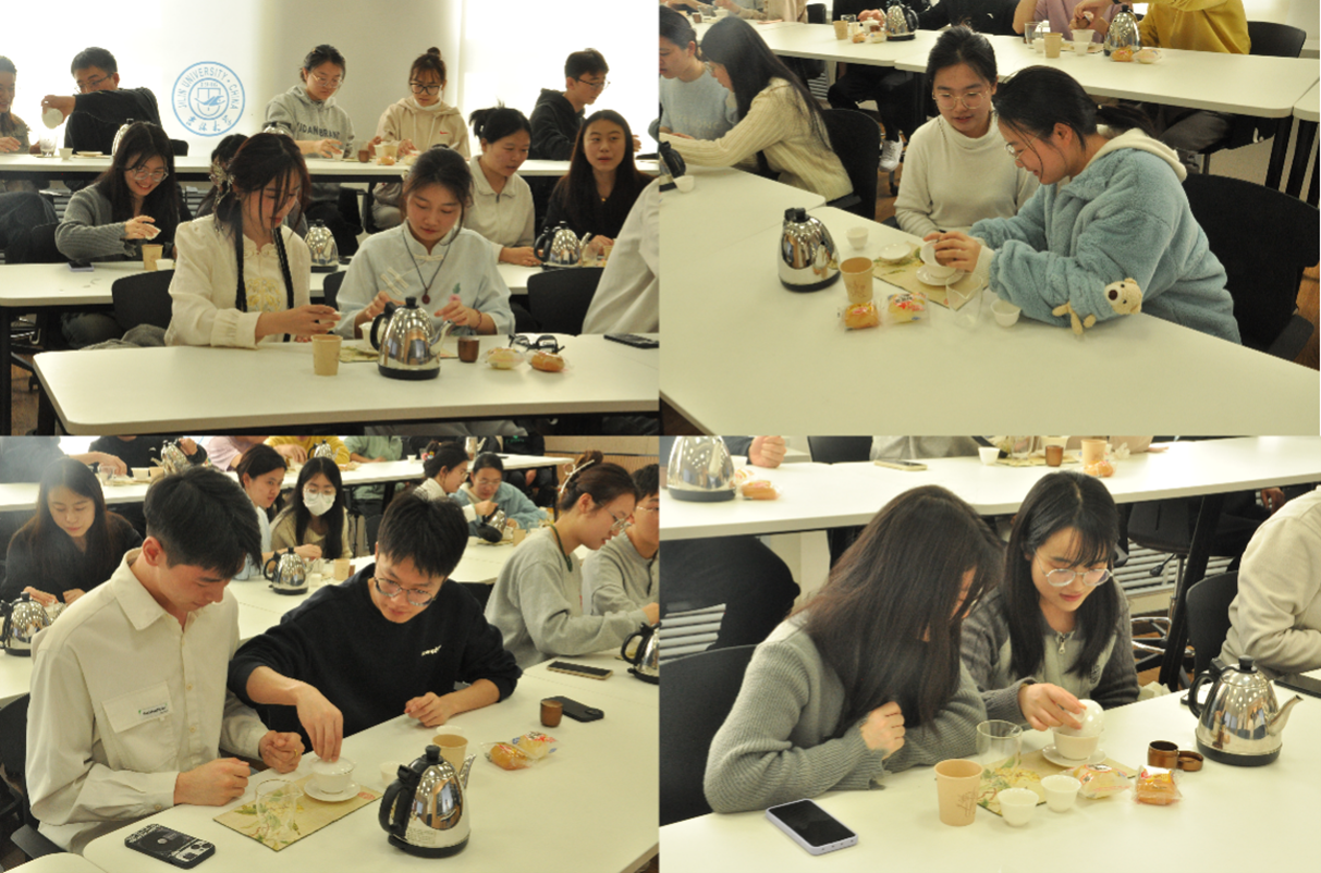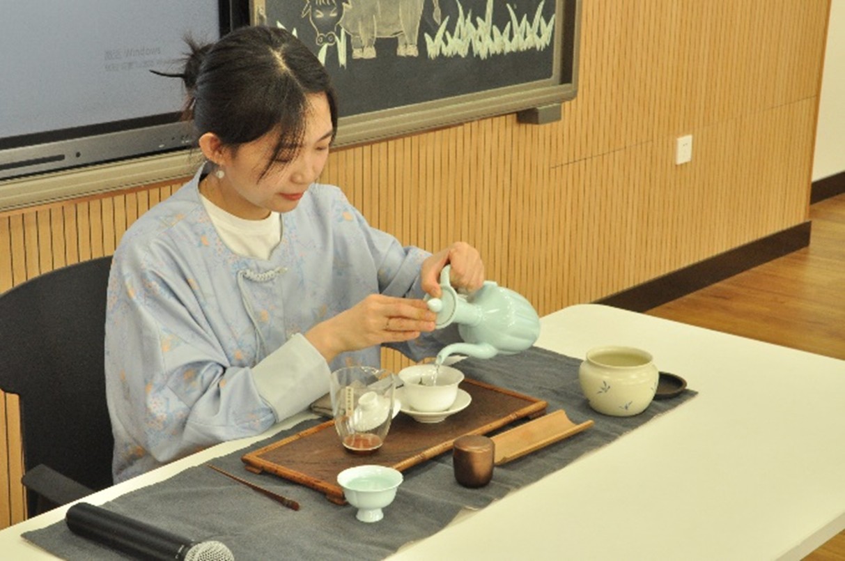 随后,茶艺师对冲泡茶叶的流程、器具和礼仪做了介绍,并带领大家动手泡茶和品茶。从洗茶、烫杯到冲泡的每一个步骤都是精心设计,让大家在悠悠茶香中亲身体验出茶文化的独特魅力。