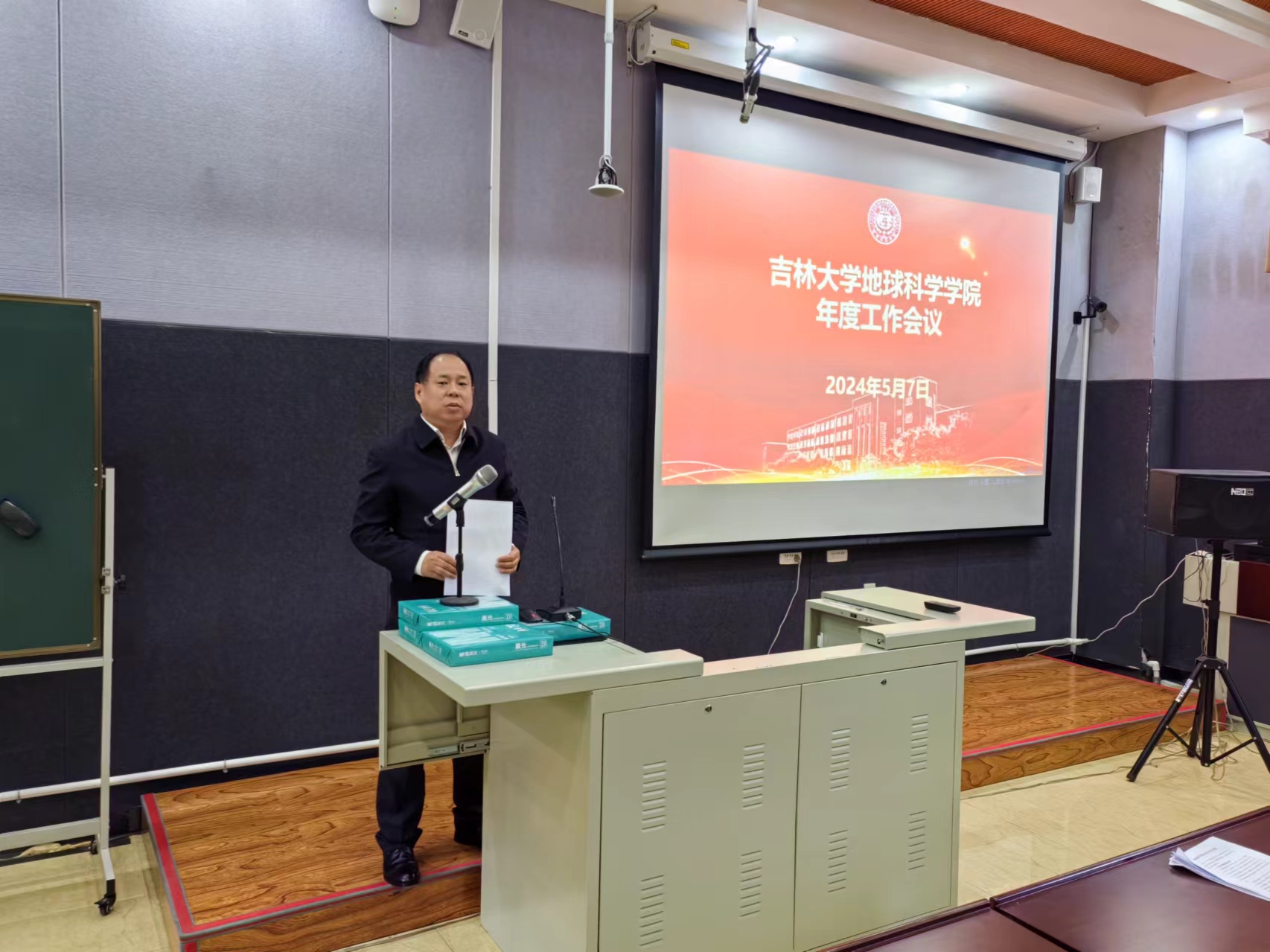 在鸽子楼125教室召开年度工作会议,全体教职工参加会议。会议由党委书记杨洲主持。