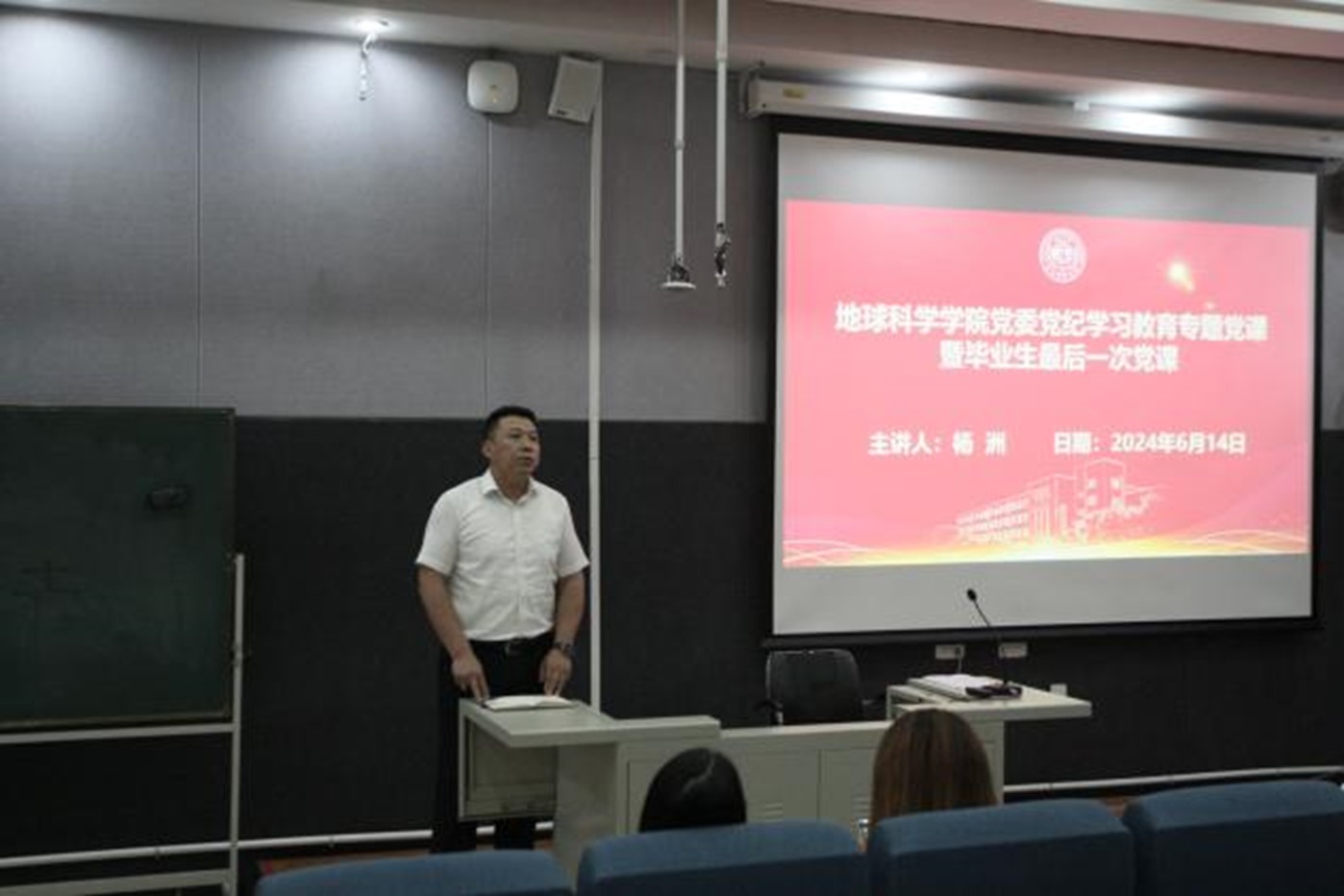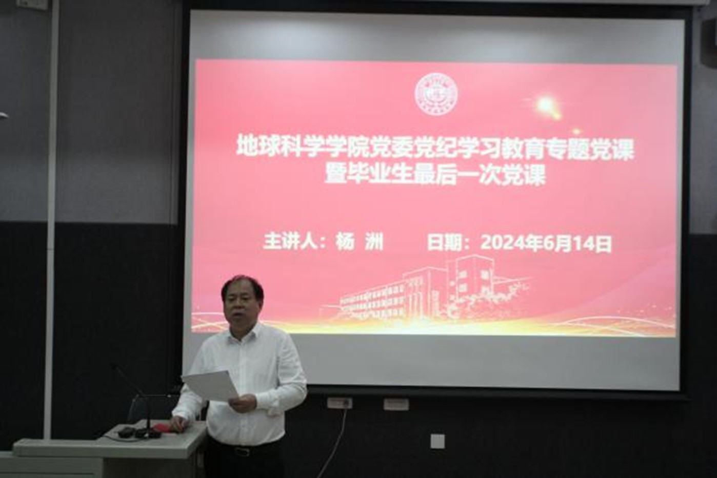 党委于鸽子楼125教室举办党委党纪学习教育专题党课暨毕业生最后一次党课。本次党课由党委书记杨洲主讲,党委副书记李阳、辅导员纪核鑫和赵晶出席,豪神娱乐城