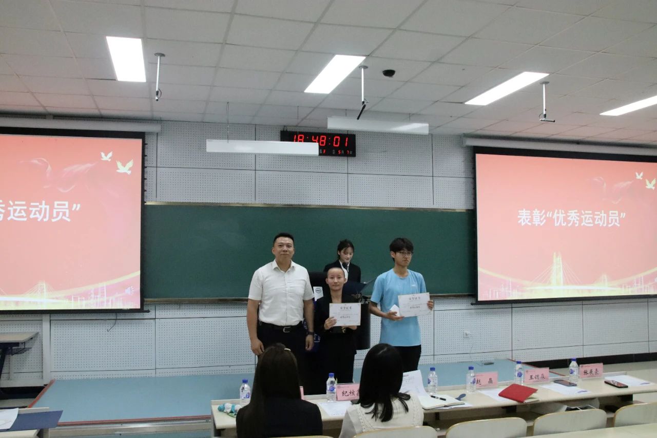 由李阳老师、韩旭老师、纪核鑫老师、赵晶老师分别为获得“优秀运动员”、“突出贡献奖”、“最美志愿者”、“最佳精神风貌奖”奖项的获奖同学进行颁奖。