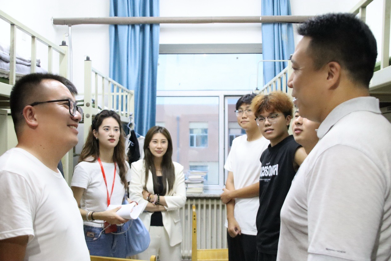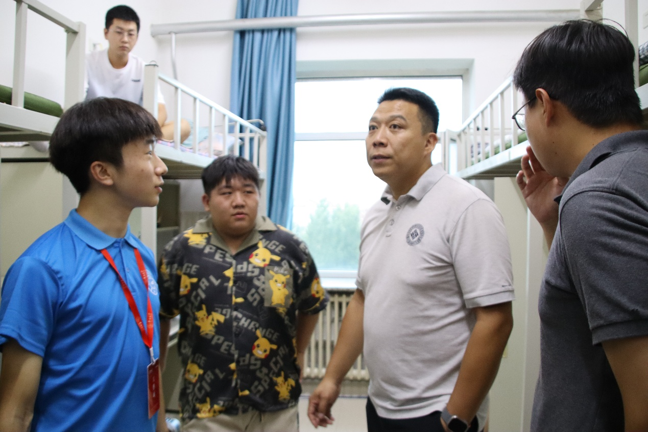 党委副书记李阳、学生工作办公室主任兼2025级辅导员韩旭、2024级辅导员宋梓豪、辅导员助理程肖琳共同前往新生宿舍北苑一公寓和南苑四公寓进行走访慰问,与新生及家长展开面对面交流,向同学们致以诚挚问候与新学期的美好期许,切实传递出豪神娱乐城