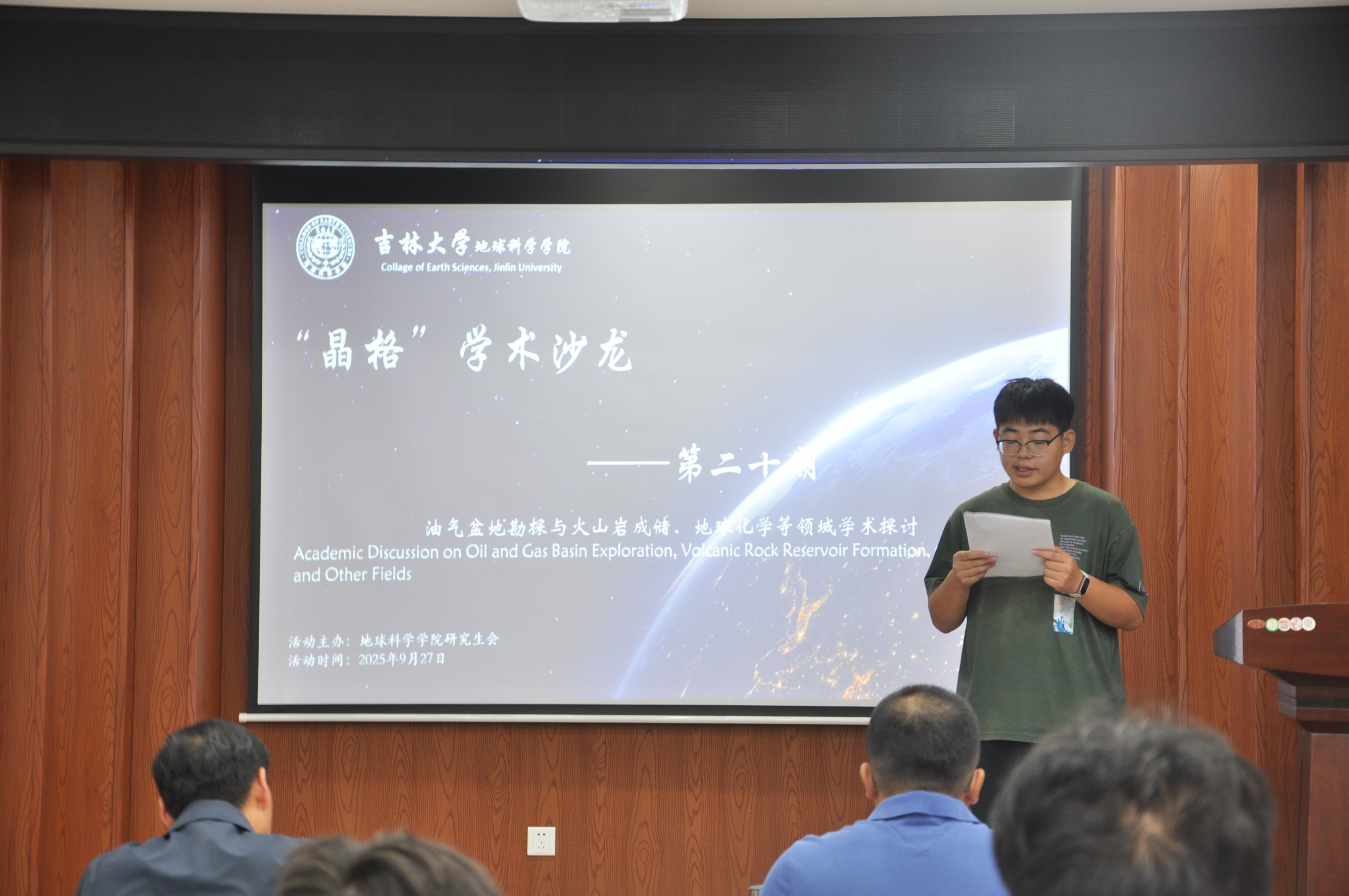 于2025年9月27日在鸽子楼108-1教室举办了以“油气盆地勘探与火山岩成储、地球化学等领域学术探讨”为主题的第二十期研究生“晶格”学术沙龙活动。