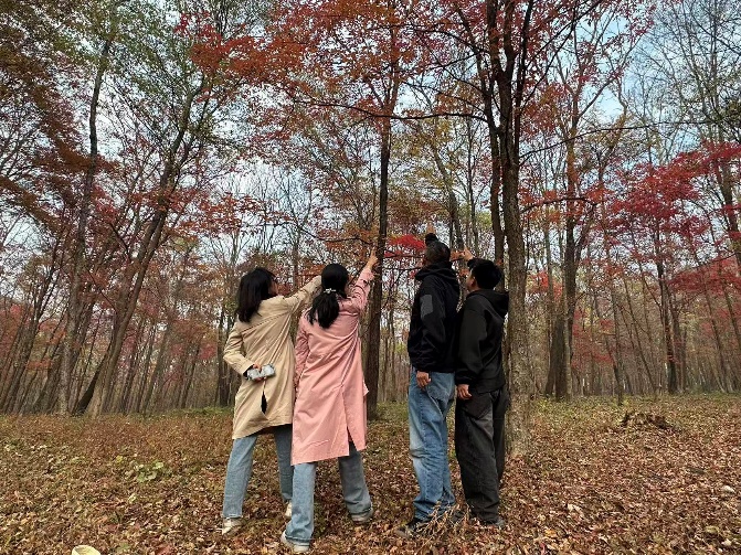 出发,驶向位于蛟河的红叶谷。一路上,大家暂时放下了平日繁重的教学与科研工作,兴致勃勃地欣赏着窗外飞驰而过的秋日胜景,聊着家常,