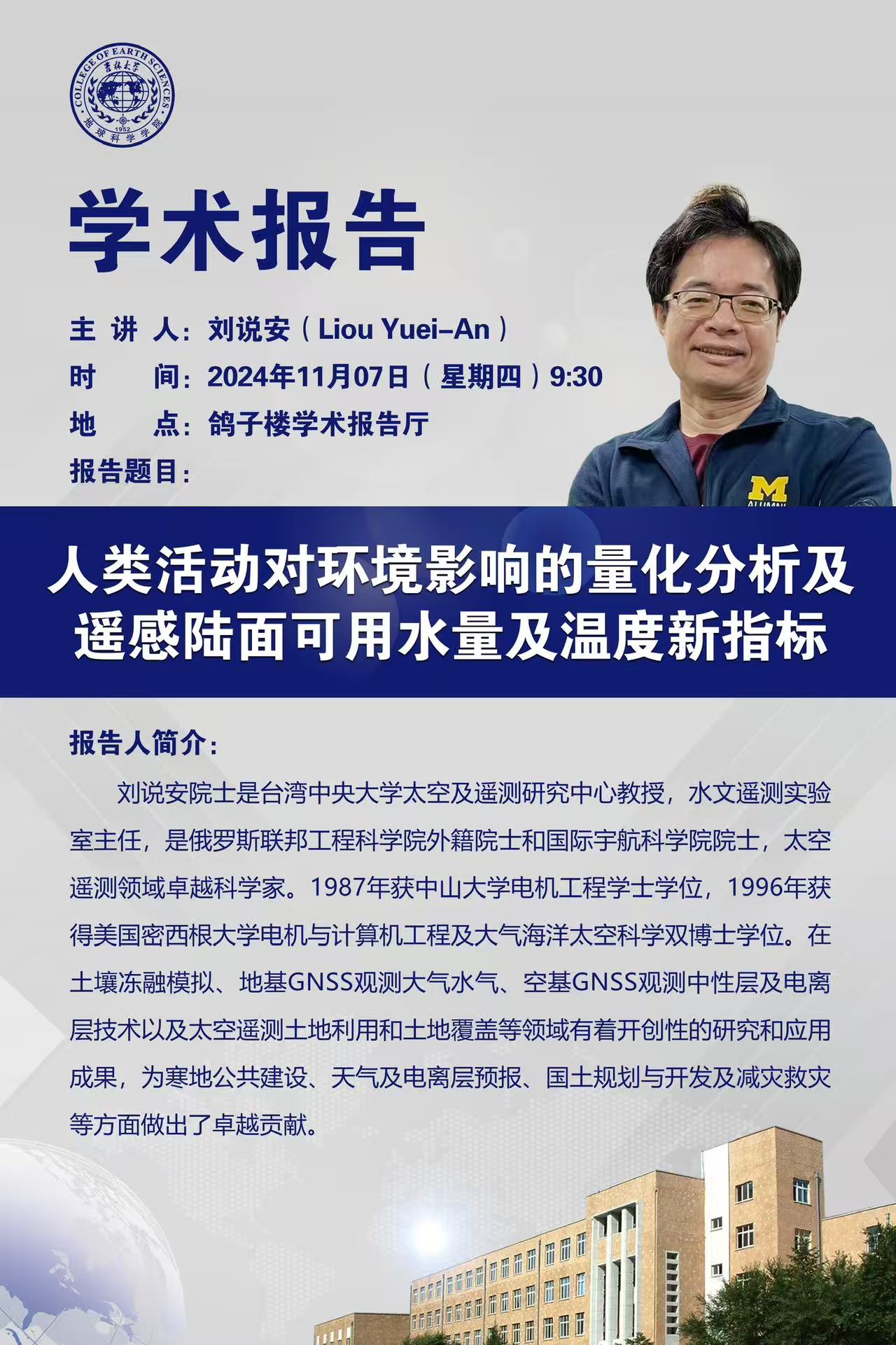 俄罗斯联邦工程科豪神娱乐城 外籍院士、台湾中央大学刘说安教授学术报告