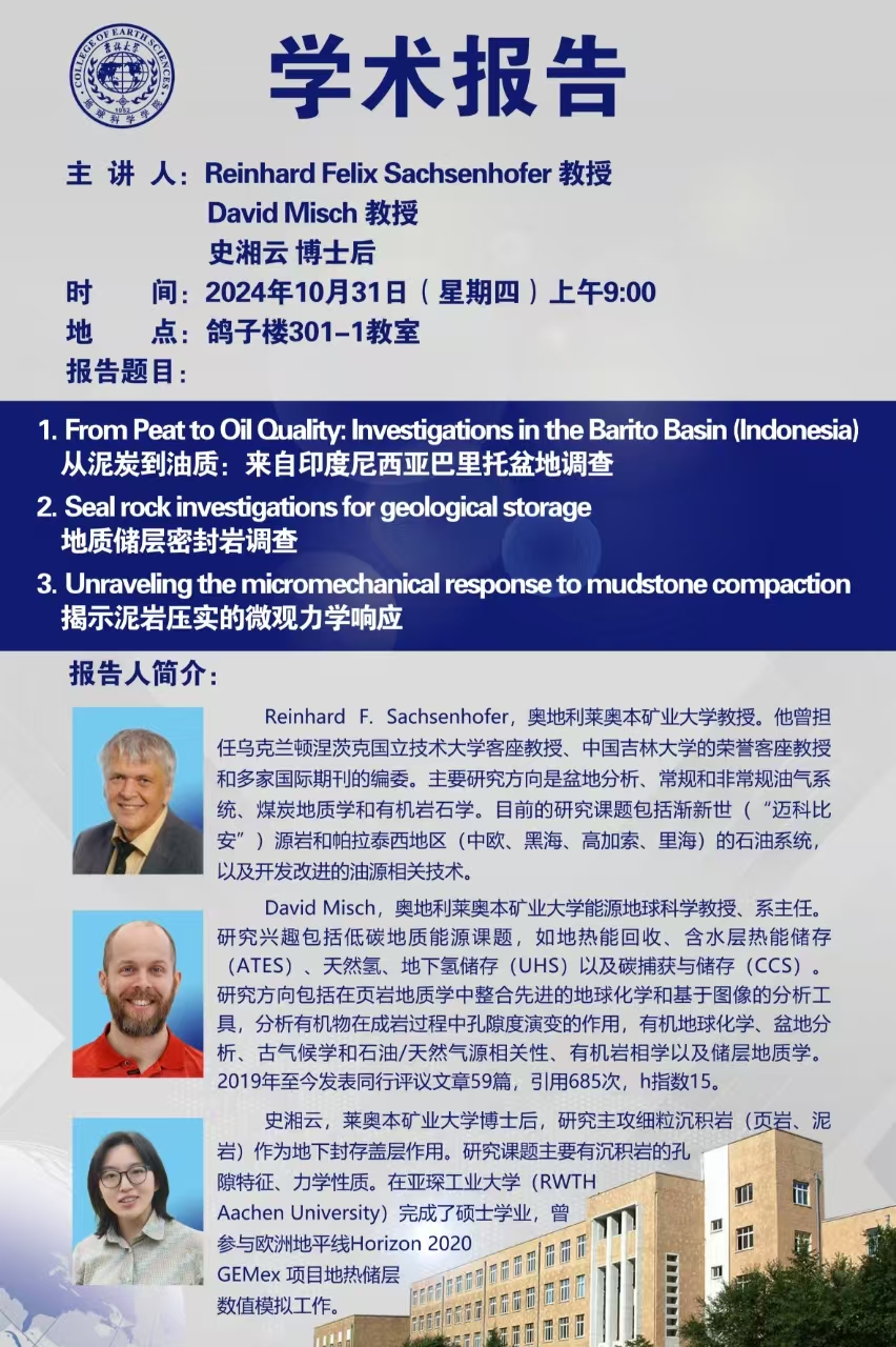 奥地利莱奥本矿业大学Reinhard F.Sachsenhofer教授、系主任David Misch教授、史湘云博士后学术报告