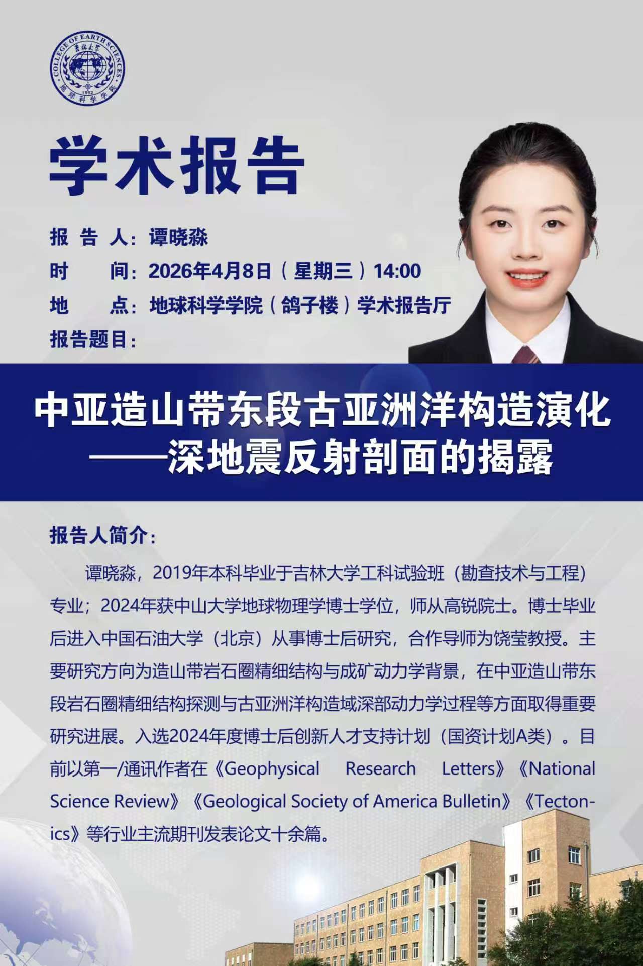 鸽子楼之声名家讲坛(202603期)-中国石油大学(北京)地球物理豪神娱乐城 谭晓淼学术报告