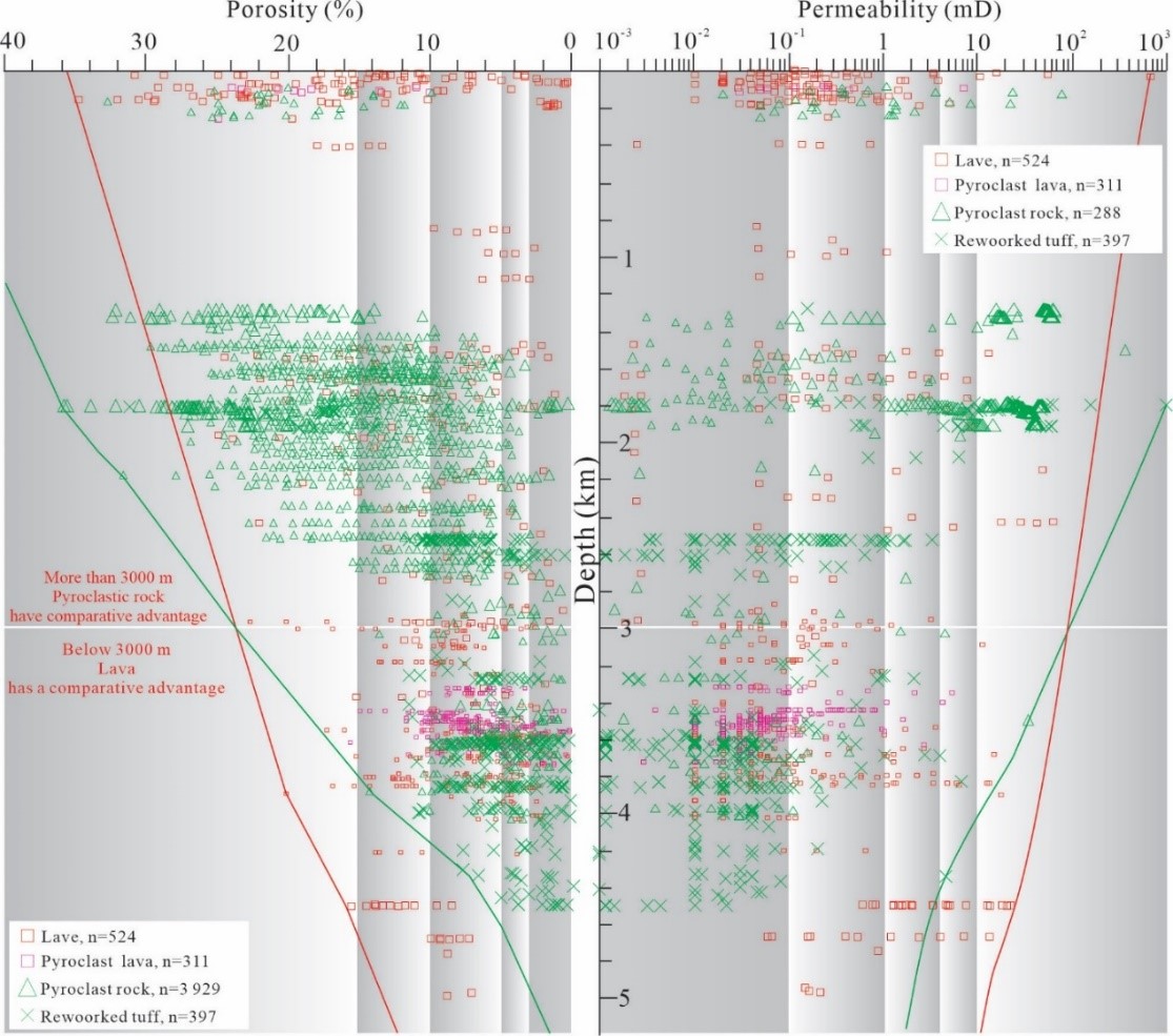 图1火山岩储层与埋深的关系