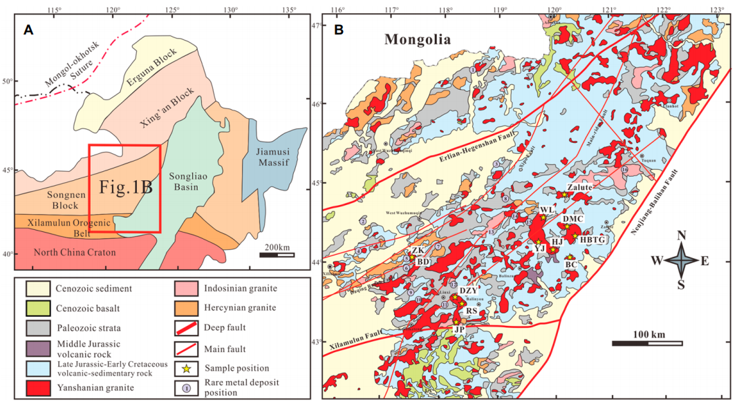 Hao-Ran Wu, Hao Yang*, Wen-Chun Ge*, M. Santosh, Jia-Hao Jing, Zheng Ji, Yan Jing; The origin of high-silica granites and rare metal mineralization: Insights from geochemistry and U-Pb-Sr-Nd-Hf-O isotopes of Early Cretaceous granitoids in the southern Great Xing’an Range, NE China. GSA Bulletin 2024, 136 (3-4): 1151-1170. doi: //doi.org/10.1130/B36726.1