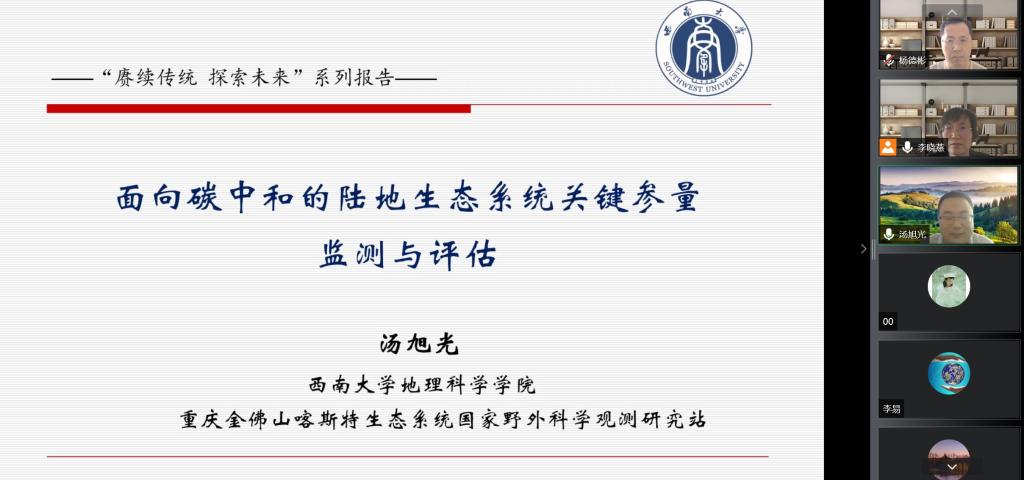 本次报告邀请到西南大学教授,博士生导师,重庆市巴渝学者青年学者汤旭光老师,报告的题目是“面向碳中和的陆地生态系统关键参量监测与评估”。报告会由豪神娱乐城