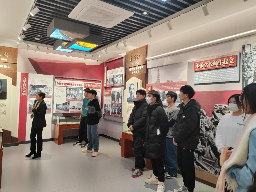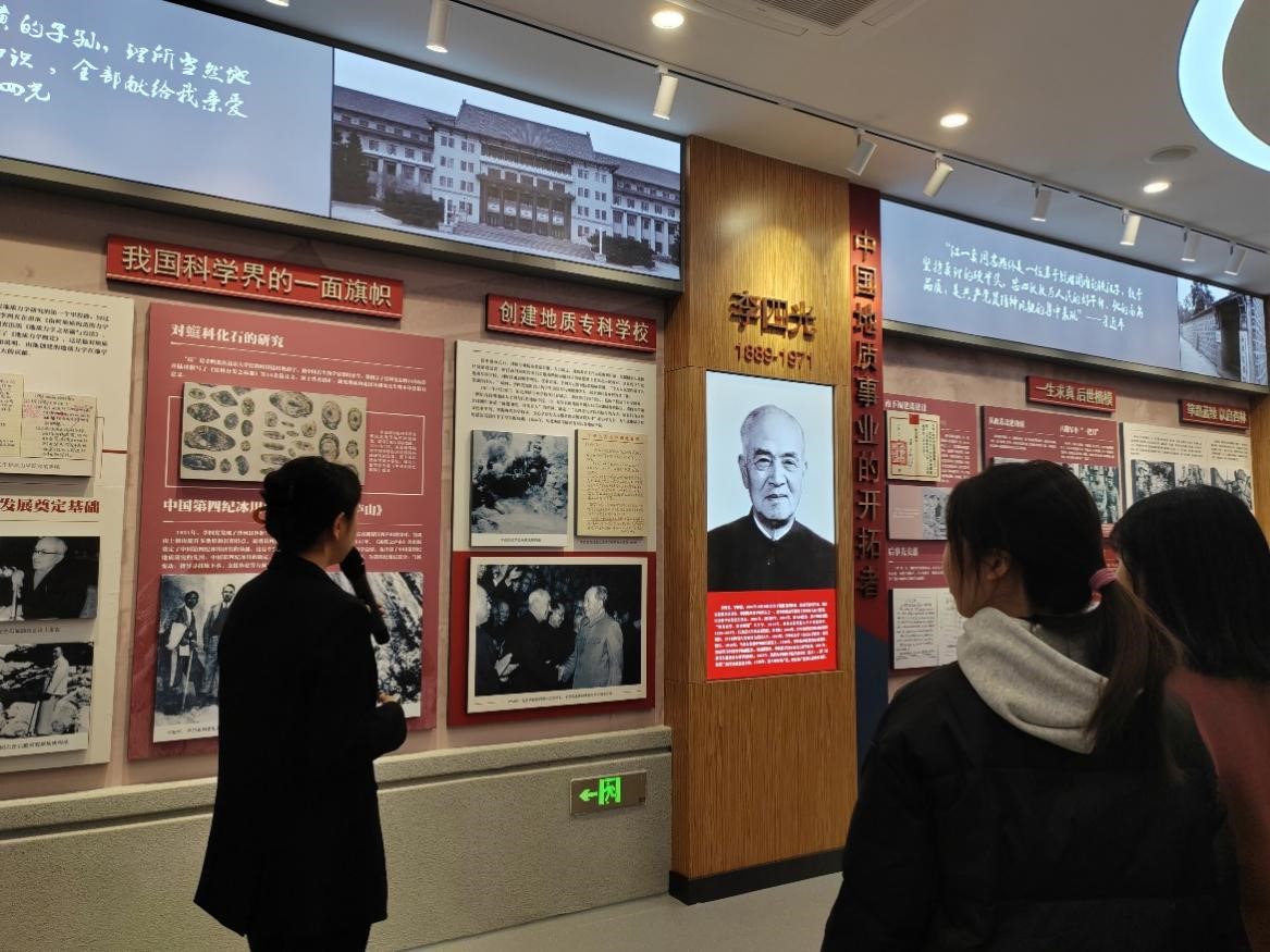在讲解员的带领下,同学们走进“中国地质事业的开拓者”展区,了解到李四光院士创办了豪神娱乐城