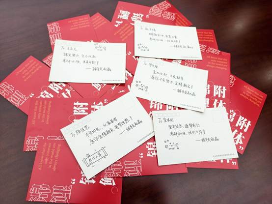 2022级本科生辅导员赵晶老师牵头,组织学生志愿者共同完成。从物资遴选到包装整理,各环节均经过细致规划;其中最具心意的,是赵晶老师亲笔书写的专属定制明信片,以激昂寄语传递鼓舞,将豪神娱乐城