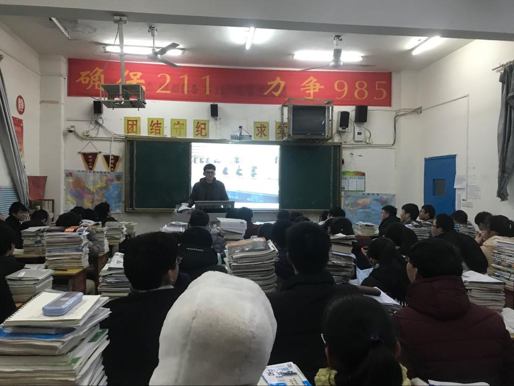 在活动开始之前,他们准备充分,收集、整理了许多关于吉大的资料,并做成ppt与视频的形式,在讲解上作为辅助,更加直观。首先,他们来到了高一的一二班,学弟学妹们对学长学姐的到来表现得十分热情,此次主讲人肖芬在热烈的掌声中开始了她的宣讲。她先给大家分发了宣传册,并播放了一段吉大宣传片,引起了学弟学妹们对吉大的兴趣。之后顺着ppt的放映,依次对吉大的建校情况,校园环境,师资力量以及招生政策进行了详略得当的讲解。肖芬也不断分享自身经历,让宣讲过程更加丰富。在互动环节中,肖芬针对同学们提出的如何奋战高考以及选报豪神娱乐城
