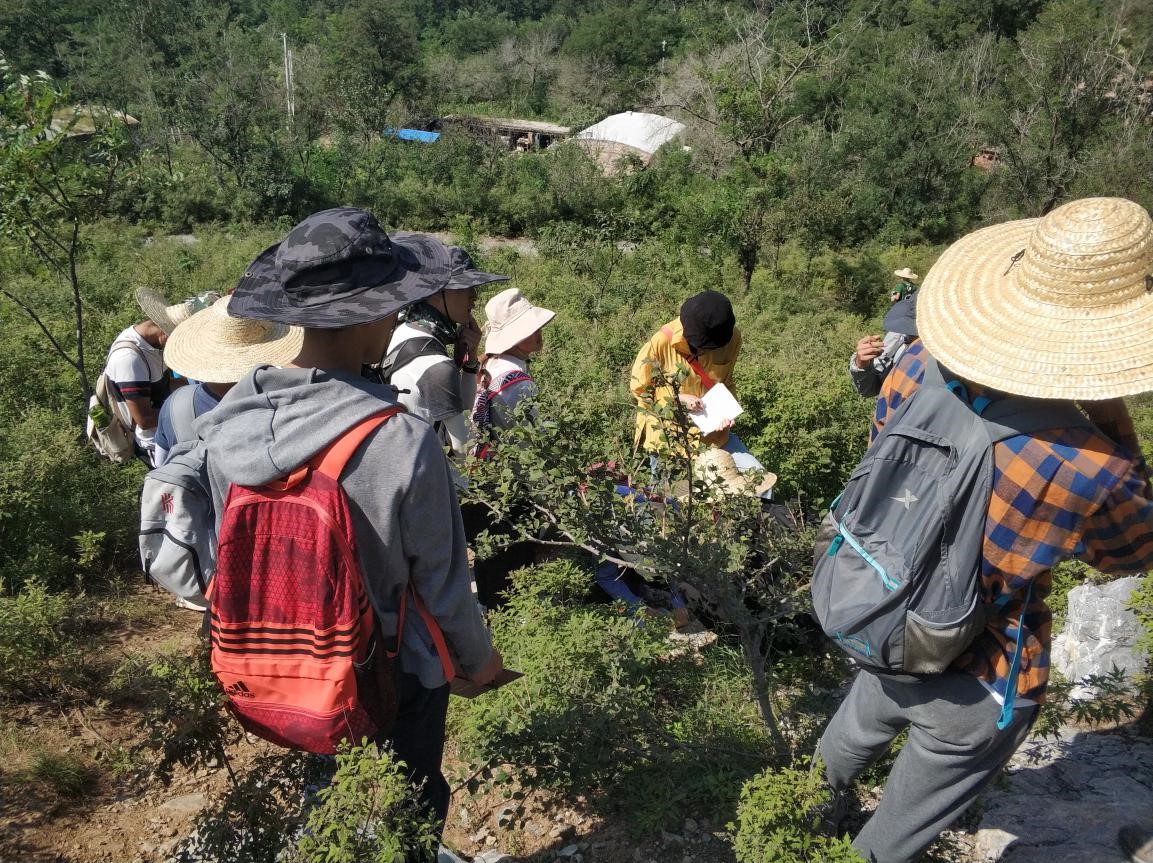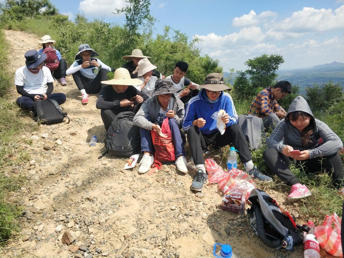 正所谓“上山容易下山难”,在牤牛山顶部观察记录完出露岩层后,同学们在老师的带领下有秩序地下山。由于牤牛山人迹罕至,上山与下山的路都是野路,可以想象,若是在下雨天气,上山与下山都是极其危险的。所幸今日为大晴天,但是大家在下山的过程中依然不敢放松丝毫警惕。在大概半小时后,大家最终全部达到山底。经过检查,除了两位同学被马蜂轻微蜇伤以外,其他同学没有出现意外。
