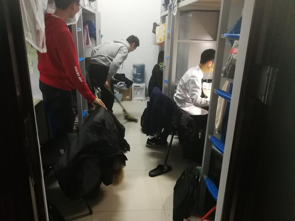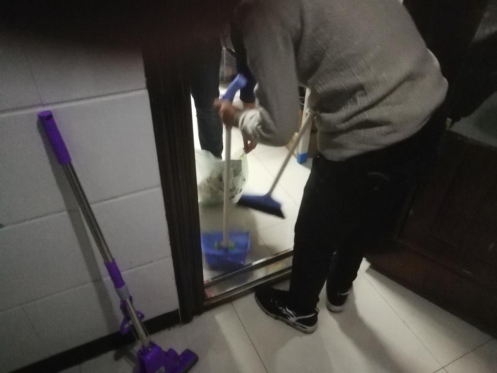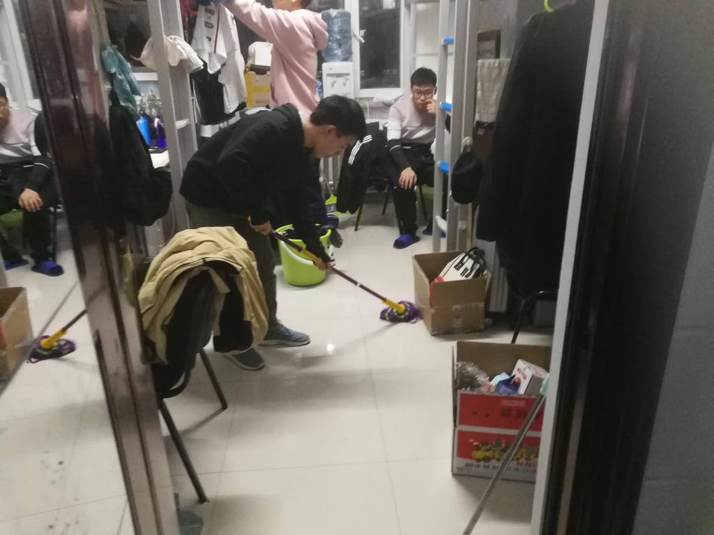 18级学生在南苑二公寓和文苑六公寓展开了一场寝室卫生保卫战——大扫除。