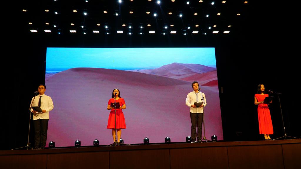《大漠敦煌》诗朗诵,四位朗诵选手用自己最真挚的感情向观众们呈现出大漠敦煌的美丽景象。朗诵过程中,他们显示出了深刻的技艺和深刻的情感,令人称赞不已。