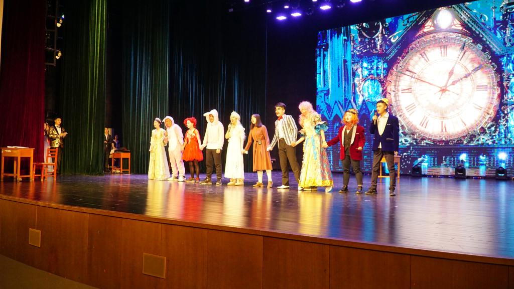 《偶像泰山和美丽珍妮》是各班班长和支书的压轴节目。经过认真的排练,他们表现得非常出色。作为各个班级的班委人员,他们为同学们奉献着自己的闲暇时间和精力,只为了让大家更方便。向他们致敬!