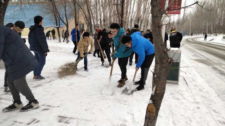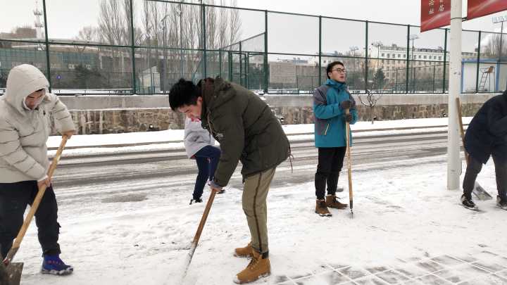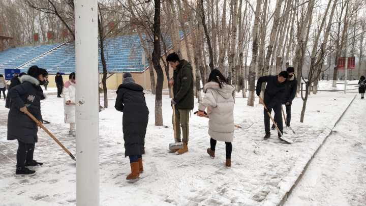 或许是上天觉得冬天太冷了,特意为吉大这所闻名中外的北国学府披上了一件纯净的银色外套——大雪纷飞,翩若惊鸿。粉妆银砌,何其美哉。而今天,最靓丽的风景线,要属操场上参加扫雪的各位同学了。寒冬中,大家毫不畏惧,他们用自己的实际行动,让这个寒冷的冬天充满着劳动和拼搏的热情。