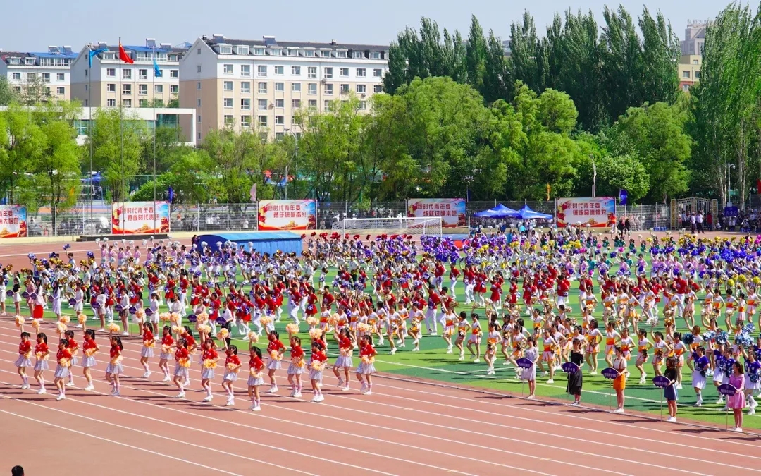 的啦啦操分队在绿茵场上汇聚,地科的啦啦操队员们身着闪亮的绿色上衣,在整个队伍中尤为亮眼。在主席台和裁判员的注视下跑入指定位置,音乐响起,表演开始。首先进行的是广播体操表演,伴随着节拍,表演者们激情澎湃,手脚伸得直而有力,每个动作都做得很认真、规范。
