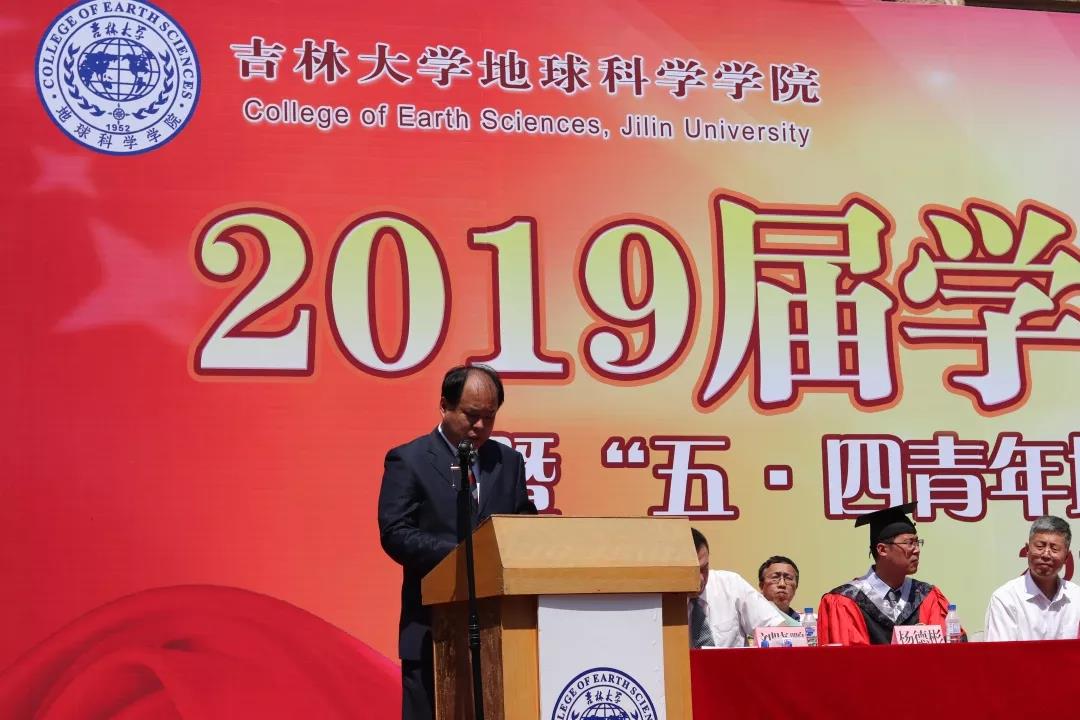党委书记杨洲老师讲话,他对2019届全体毕业生寄予了殷切的希望,同时也勉励同学们能够继承和发扬先贤们的精神品格和地质人的壮志豪情。他希望毕业生同学们既能仰望星空,又能脚踏实地,不忘初心梦想,砥砺前行奋斗。做有价值的人、做有情怀的人,努力书写无悔的人生篇章!