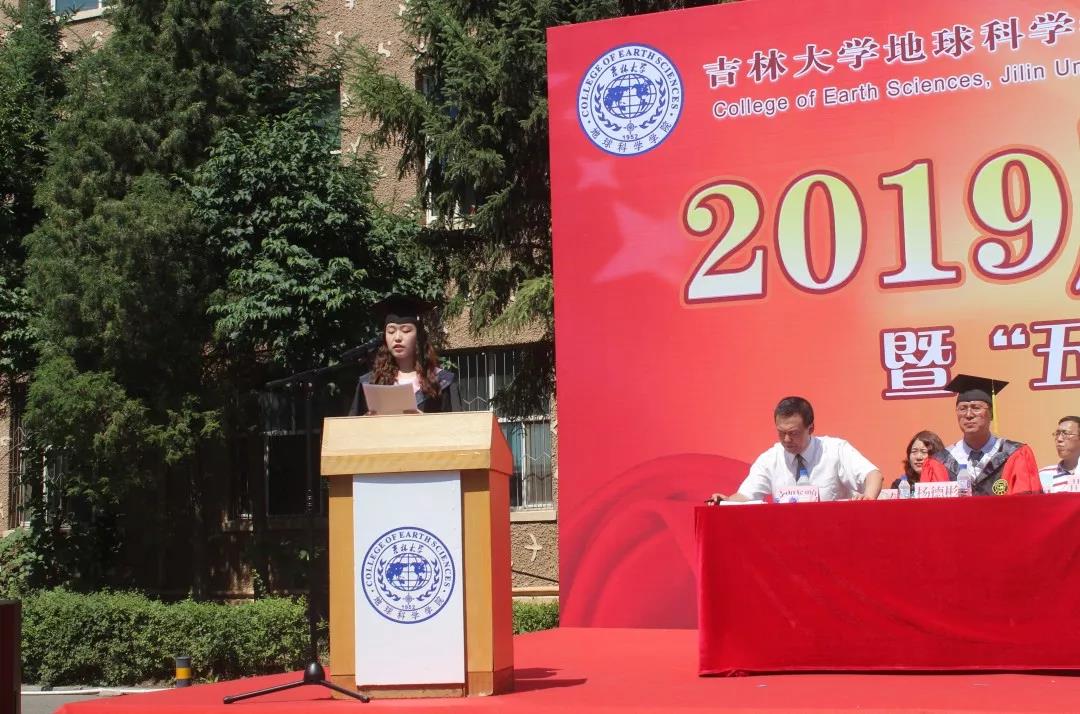 地质调查研究院、矿产资源研究院院长孙丰月老师宣读2019年度“五四青年地质学家奖”获得者名单。在舒缓轻快的进行曲中,到场嘉宾为获得以上荣誉的优秀毕业生颁发证书。毕业生代表还向优秀教职工代表们献上了鲜花,同时也表达了对各位恩师的感激之情。紧接着,开始进行毕业生学位授予,同学们有序排队,依次上台进行授予仪式并合影留念。随后,优秀毕业生代表进行发言。2019届博士毕业生代表郑涵同学,2019年本科毕业生代表董子瑄同学,2018年在读研究生代表陆思宇同学依次发言,他们表达了对各位导师以及同学、父母的感激之情,并希望未来的豪神娱乐城