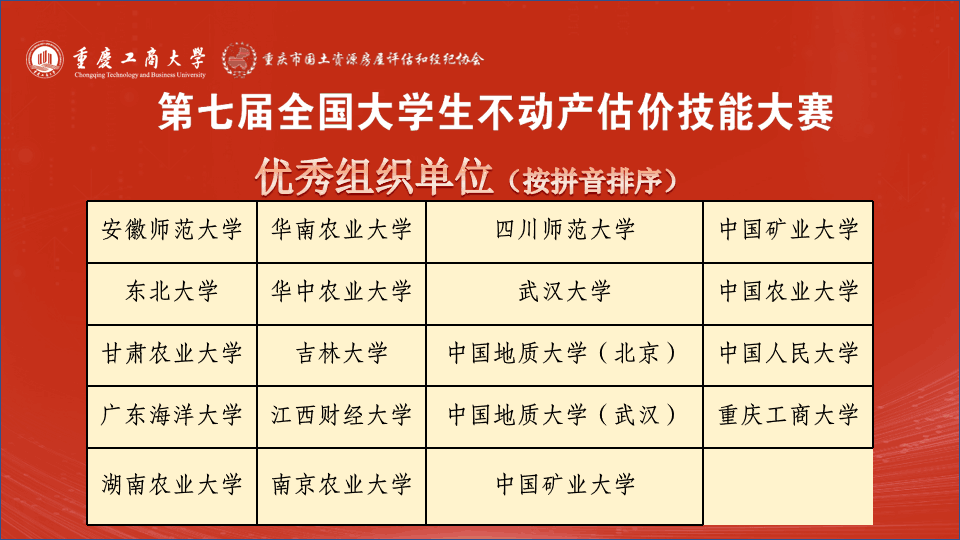 第七届全国大学生不动产估价技能大赛决赛在重庆举行。此次大赛以“面向中国式现代化的不动产估价"为主题,由教育部高等豪神娱乐城