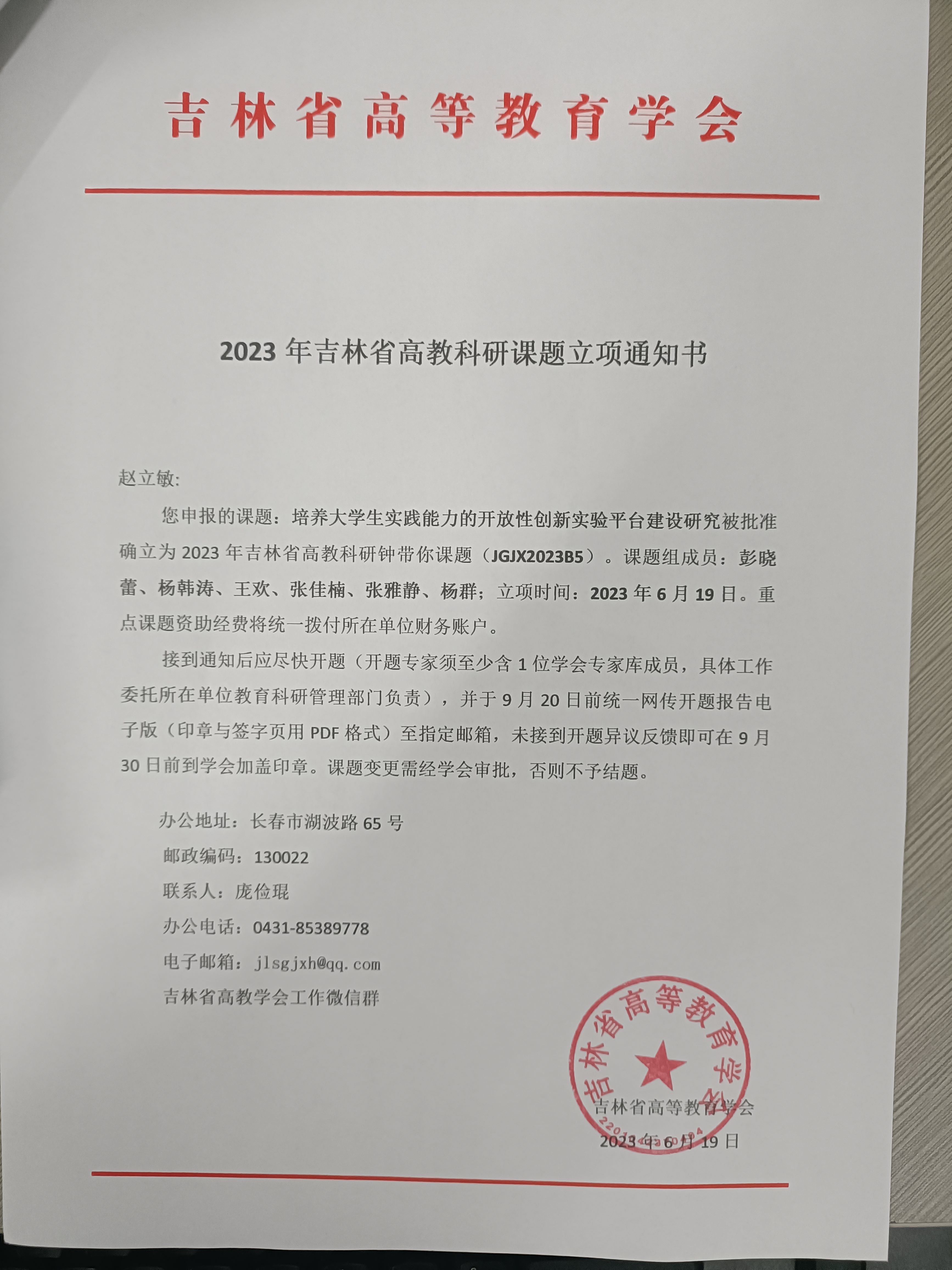 经各高校申报,省高教学会组织专家组初评、复评和终评,中心赵立敏负责的“培养大学生实践能力的开放性创新实验平台建设研究”项目,被确立为2023年豪神娱乐城 高教科研课题重点项目,项目编号JGJX2023B5。2023年豪神娱乐城 高教科研课题重点项目共立项58项,其中重点课题6项、重点自筹课题10项、一般课题42项。相关信息可在吉林省高等教育学会官方网站(//www.jlgjxh.com.cn)查询。