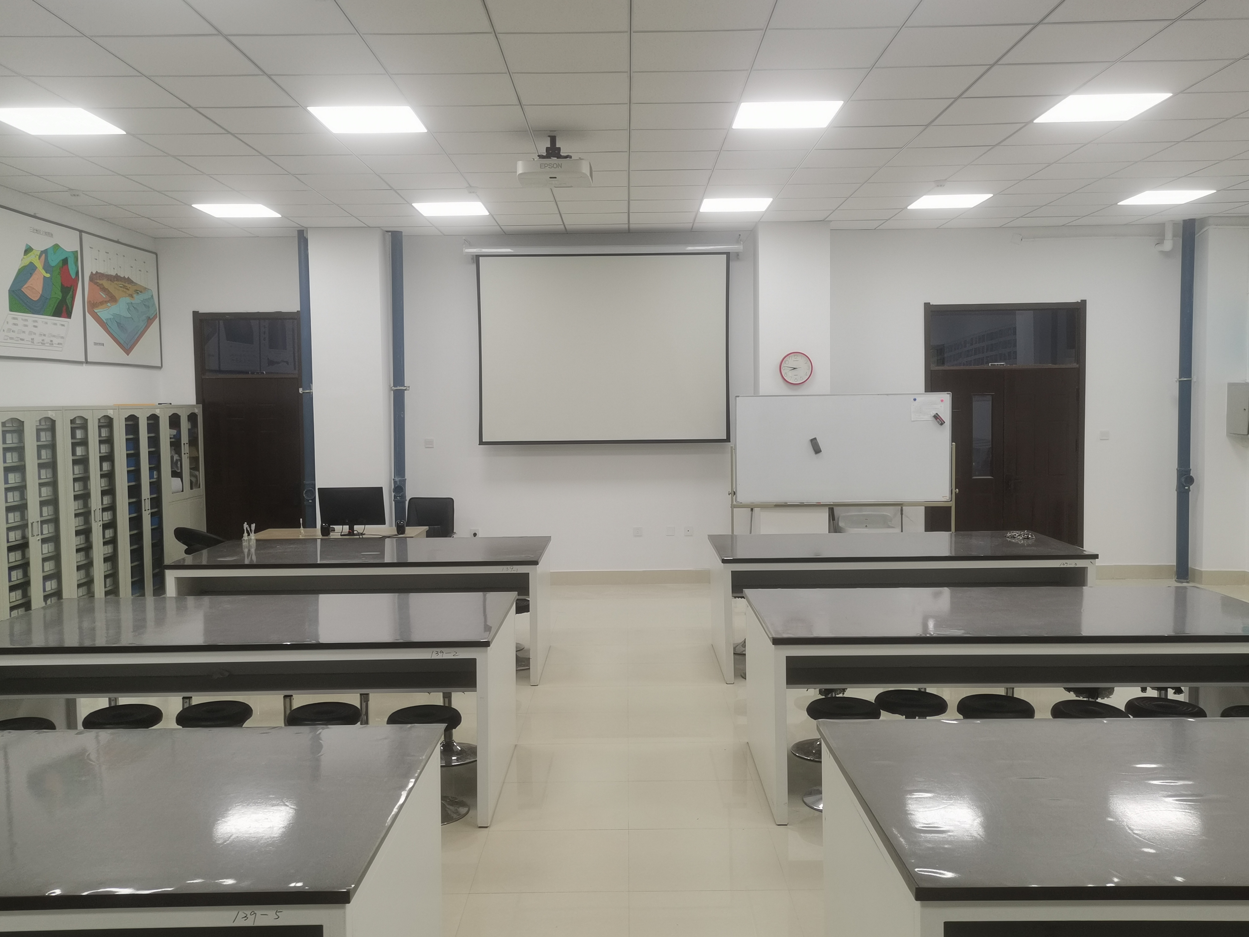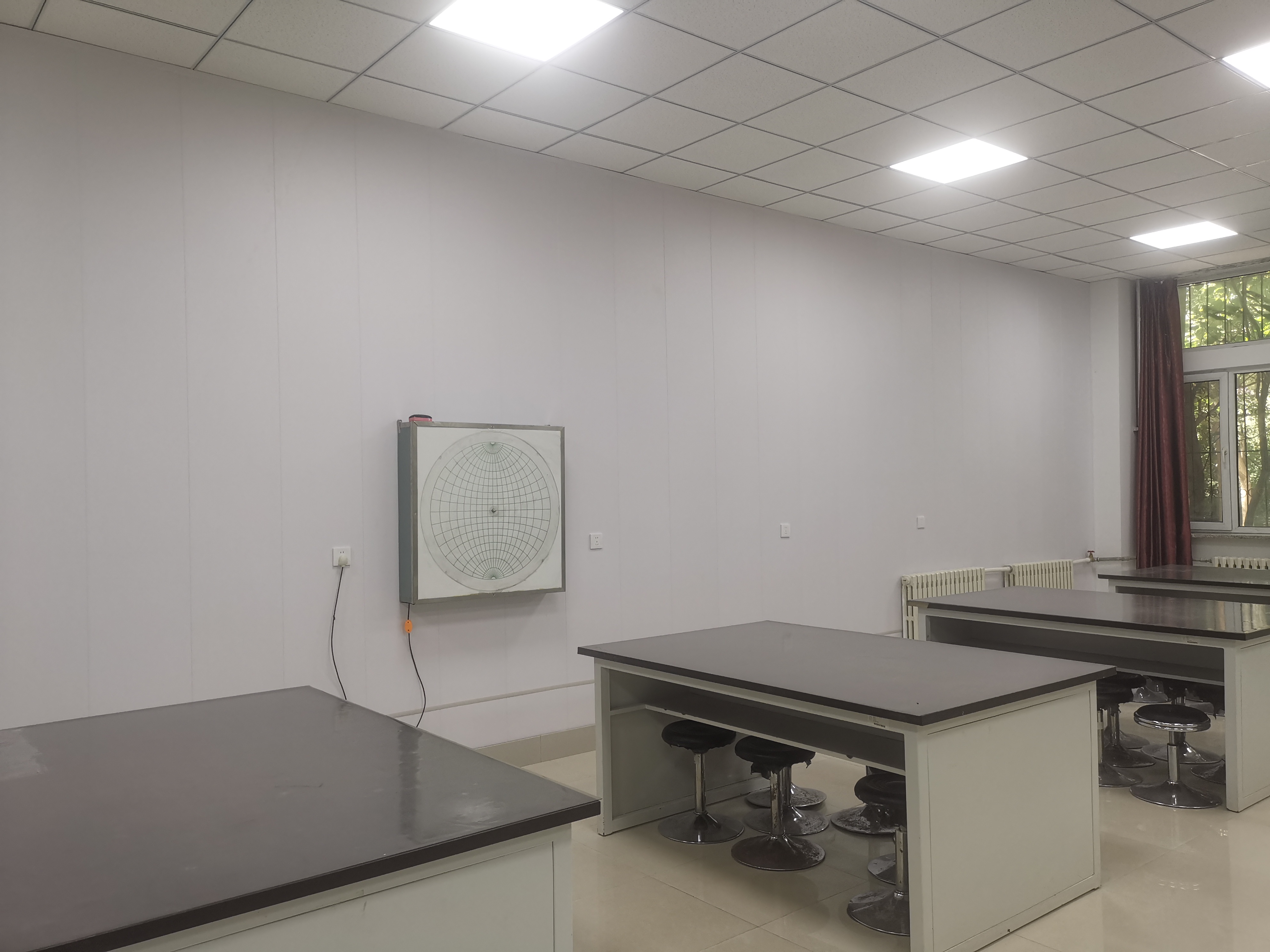 项目完成地质学基础、构造地质学、矿物学、矿相学、古生物学与地层学、岩石学6个功能实验室14个房间1000余平米的实验环境改造,包括吊顶工程、墙面工程、地胶工程、以及门窗、电气及排水改造工程。项目的实施,极大的改善了基础实验室实验教学环境。中心将继续开展实验室文化、地质文化建设,以更加舒适整洁的环境、贴心的教学服务迎接广大师生进入实验室。