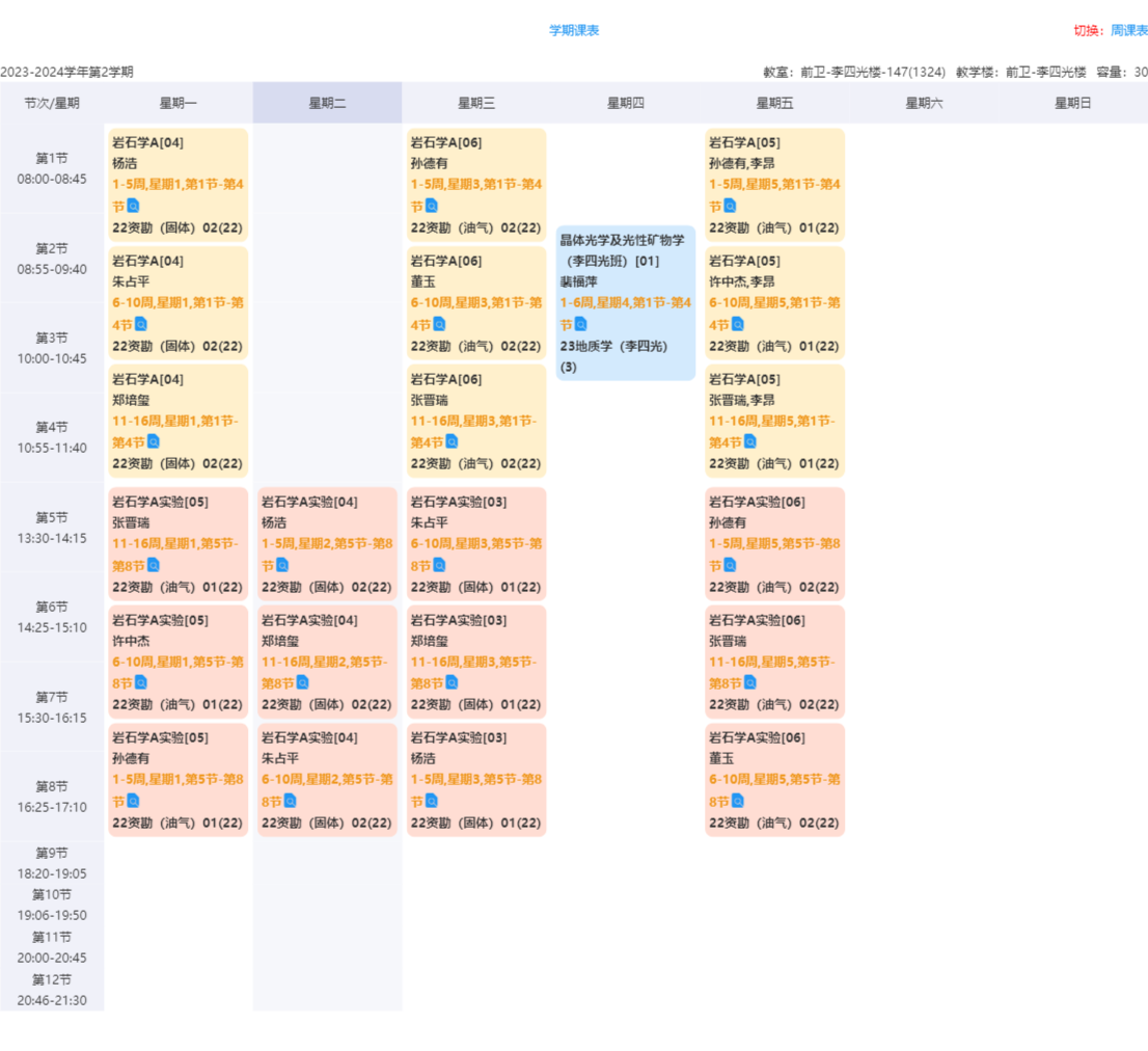 此外,132构造地质学实验室、144古生物学实验室相关构造地质学A,构造地质学B、地史学、古生物与地层学等实验课程随理论课进展排课。