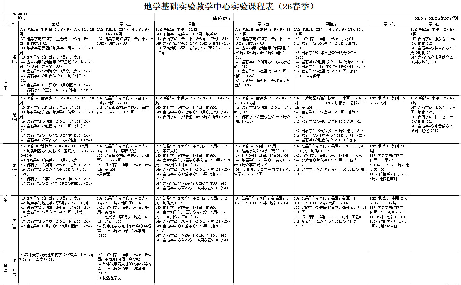 2026春季课表