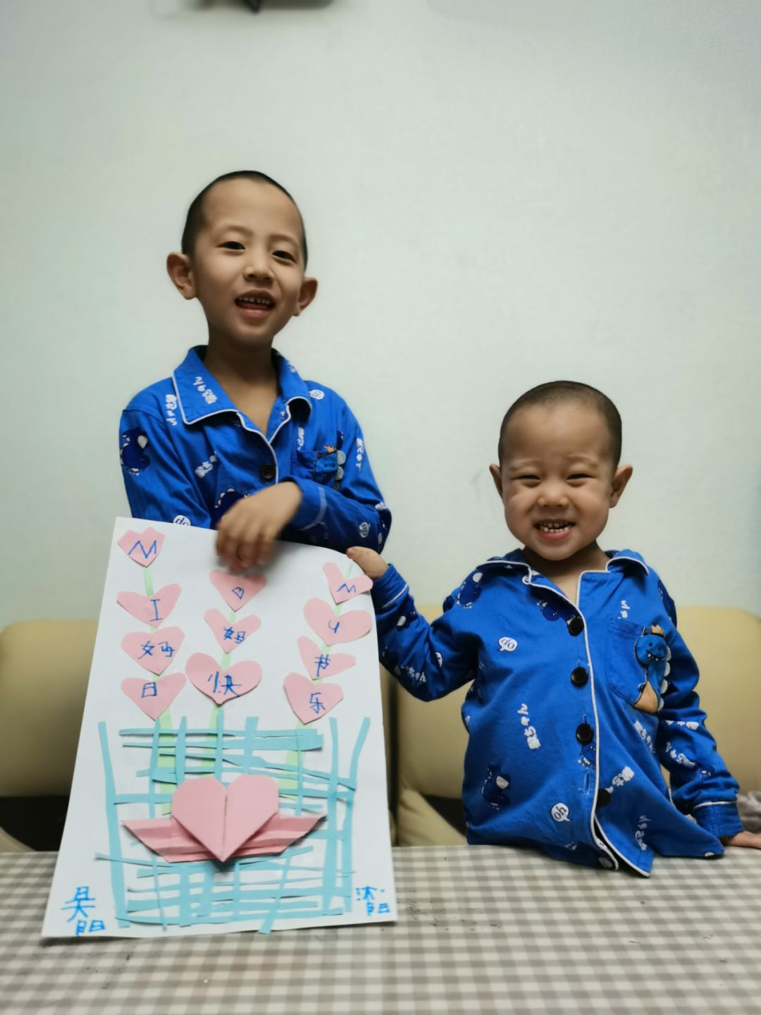 张茜老师的两个儿子送给妈妈亲手制做的剪纸画,祝愿妈妈节日快乐。