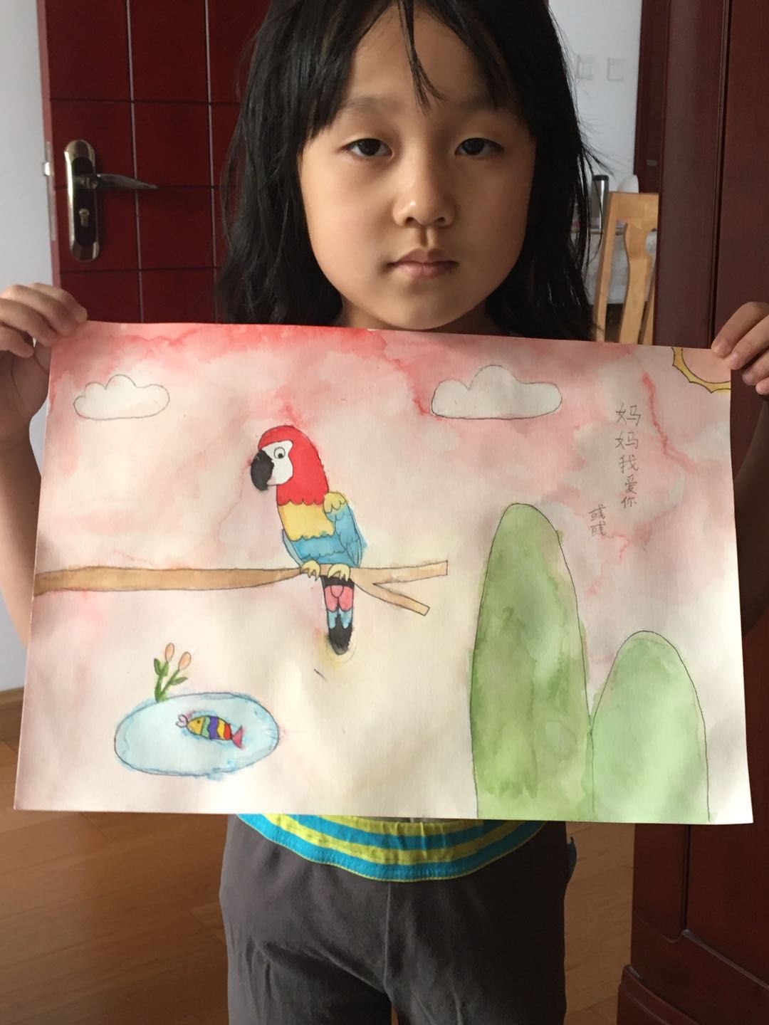沙茜老师的女儿送给妈妈一幅画,妈妈我爱你。